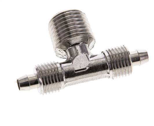 Racor rápido en T de acero inoxidable 1.4404 de 6x4 y R1/4'' con roscas macho