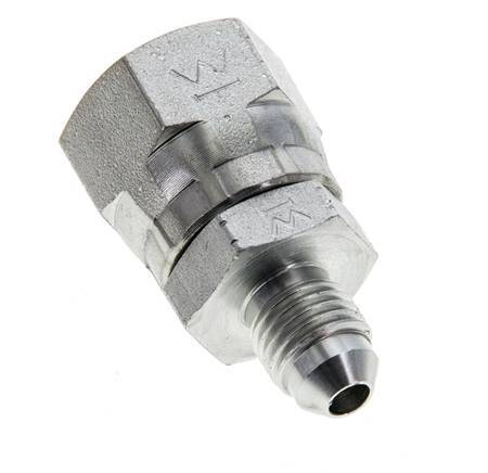 Se trata de una boquilla reductora JIC con roscas UNF. Los racores de acero cincado ofrecen cierta resistencia a la corrosión, pero no están pensados para entornos corrosivos. La presión máxima de funcionamiento es de 275 bar (3863,75 psi).