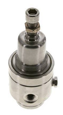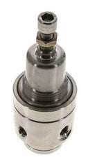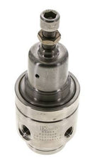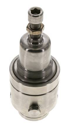 El regulador de presión ajusta la presión continuamente hasta un nivel estable, incluso cuando la presión de entrada varía. El nivel puede ajustarse entre 2,0 y 30,0 bar (29 a 435 psi). Este modelo tiene puertos G 1/4 de pulgada. El caudal máximo es de 700 l/min. Se recomienda seleccionar un filtro con una tasa de caudal máxima de 1,5 a 2 veces mayor que la tasa de caudal máxima de su sistema para evitar una caída de presión excesiva. Además, tenga en cuenta que presiones de entrada más bajas pueden reducir la tasa de caudal máxima alcanzable, por lo que debe asegurarse de que la presión de su sistema sea suficiente para un rendimiento óptimo. Tenga en cuenta que el regulador de presión controla la presión de salida, no el caudal. La presión de salida puede ajustarse tirando del volante hacia arriba y girando.
