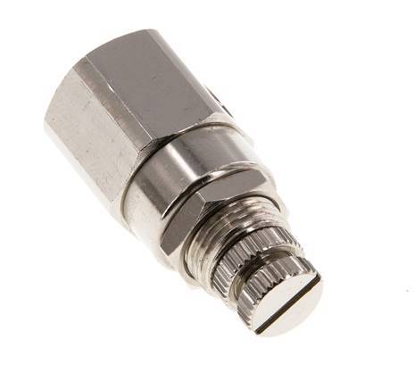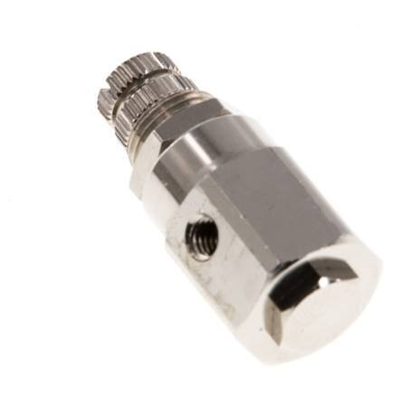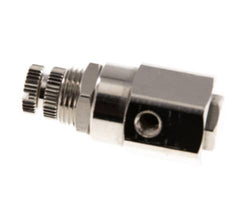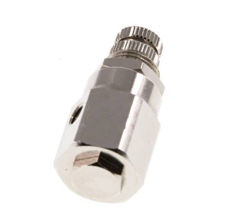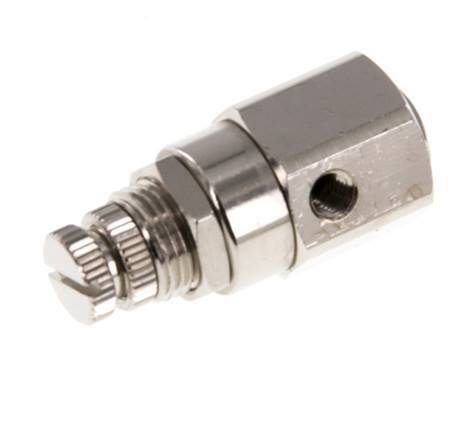 El regulador de presión ajusta la presión continuamente a un nivel estable, incluso cuando la presión de entrada varía. El nivel puede ajustarse entre 1,0 y 8,0 bar (14 y 116 psi). Este modelo tiene puertos m5. El caudal máximo es de 75 l/min. Se recomienda seleccionar un filtro con una tasa de caudal máxima de 1,5 a 2 veces mayor que la tasa de caudal máxima de su sistema para evitar una caída de presión excesiva. Además, tenga en cuenta que presiones de entrada más bajas pueden reducir la tasa de caudal máxima alcanzable, por lo que debe asegurarse de que la presión de su sistema sea suficiente para un rendimiento óptimo. Tenga en cuenta que el regulador de presión controla la presión de salida, no el caudal. La presión de salida puede ajustarse tirando del volante hacia arriba y girándolo.