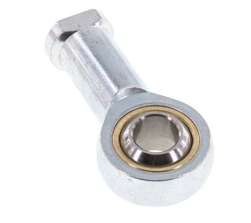 Esta cabeza de rótula de acero cincado con rosca hembra M16 se utiliza para montar cilindros neumáticos. El diámetro del agujero de la bola es de 16 mm. Se monta en el extremo de los vástagos de pistón con rosca macho. La punta de varilla es adecuada para recorridos lineales o en arco y también permite pequeñas desalineaciones angulares laterales. Incluye boquilla de engrase para una buena lubricación durante toda la vida útil. I.a. compatible con los siguientes cilindros: Cilindros redondos de 50 mm y 63 mm.