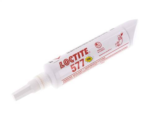 Sellador de roscas Loctite de resistencia media con una temperatura máxima de 150 °C. Se utiliza para sellar conexiones roscadas dentro de un sistema. Sustituye a la cinta tradicional de PTFE o a la fibra de cáñamo. Los selladores de roscas son productos químicos que curan anaeróbicamente y se expanden en los orificios entre la rosca de la conexión, rellenando los huecos.