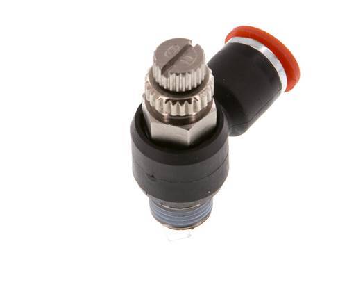 Silenciador de control de flujo Codo de entrada al medidor 6 mm - R1/8'' Latón/PA 66