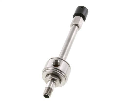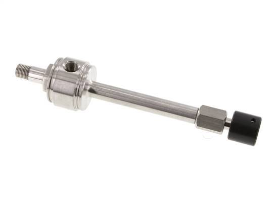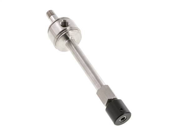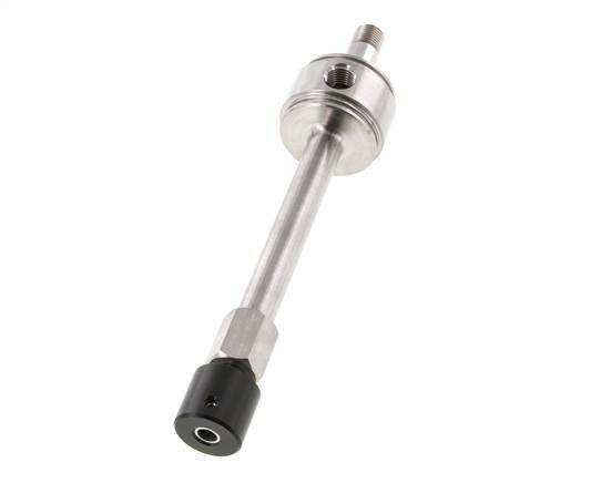 Este vórtice es ideal para la refrigeración puntual. Tiene una entrada de aire y una salida de aire frío con rosca macho. El aire comprimido entrante se separa, mediante un generador de vórtices, en una corriente de aire frío y otra caliente que salen del tubo por los extremos opuestos. La diferencia entre las temperaturas de entrada y salida se controla mediante una válvula de control de flujo ajustable. La cantidad de aire se reduce cuando la temperatura ajustada se reduce. Utilice siempre aire comprimido filtrado y sin grasa.
