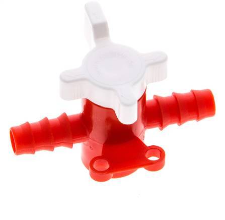 Esta válvula de bola de 2 vías de 3/8 de pulgada (9 mm) con conexión de manguera está hecha de polietileno (PE). El diámetro nominal de la válvula es de 6 mm (DN 6). La válvula es adecuada para temperaturas de funcionamiento entre 0 y 40 °C (32 a 104 °F). Está diseñado para el paso de líquidos sin presión.