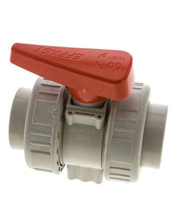 Válvula de Bola PP-H de 2 Vías Doble Unión 50 mm FKM