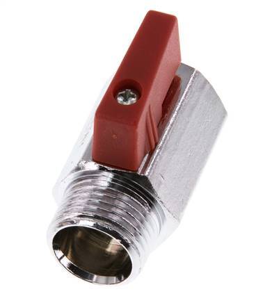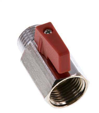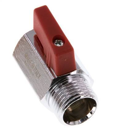 miniválvula de bola de 2 vías fabricada en latón niquelado con puertos roscados macho a hembra de G 1/2 pulgadas. El tipo de rosca es BSPP (British Standard Pipe Parallel). Con nuestra gama de accesorios de 1/2 pulgada, la válvula puede instalarse en cualquier tubería. El diámetro nominal del orificio es de 10 mm. Las miniválvulas de bola son muy compactas. Esto los hace muy adecuados para aplicaciones con poco espacio de instalación o sistemas en los que se desea un peso reducido.
