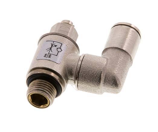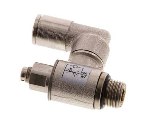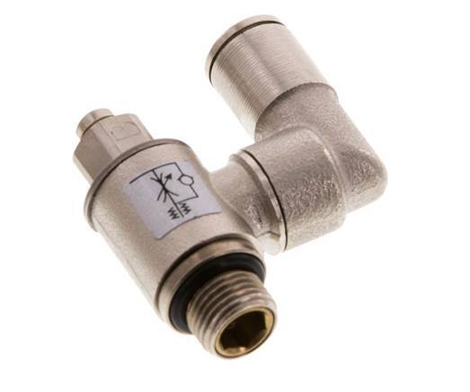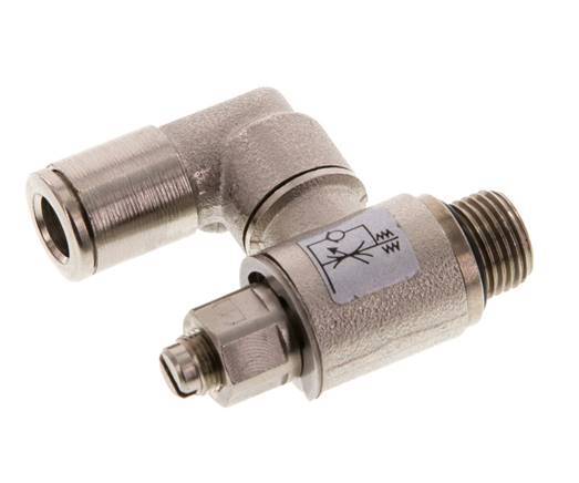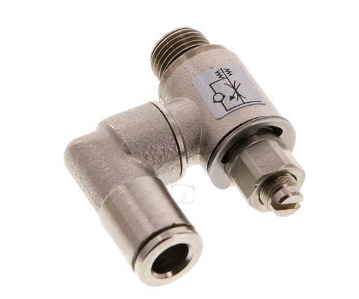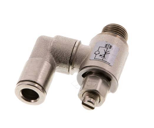 Se trata de una válvula neumática de control de flujo giratoria de latón niquelado para el control ajustable del flujo de aire en una dirección. Tiene un racor de 6 mm en un lado y un puerto roscado macho de 1/8 pulgadas en el otro. Dispone de juntas de NBR/Plástico que lo hacen apto para aplicaciones en un rango de temperaturas de -20 a 80 °C (-4 a 176 °F). El rango de presión de funcionamiento es de 0,2 a 10 bar (3 a 145 psi). Utilice la aguja giratoria para ajustar el tamaño del orificio que define el caudal en una dirección.