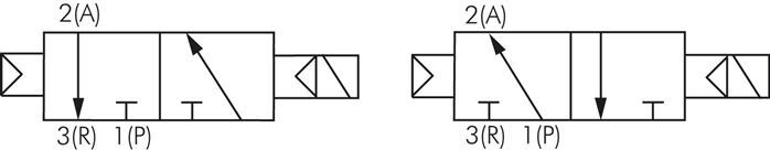 Elija una válvula de 3/2 vías para un cilindro de simple efecto con retorno por muelle, que requiere una sola acción para extenderse. Después de que el muelle retraiga el vástago de la válvula, ésta vuelve a su posición normal, sin accionar.